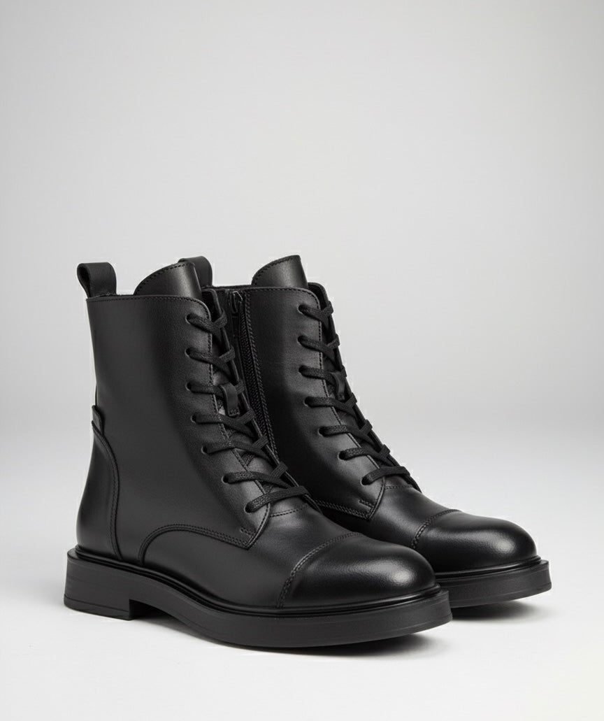 Çizme moderne, të kombinuara me lëkurë cilësore dhe dizajn klasik me lidhëse. Zinxhiri anësor i shton një lehtësi të madhe në veshje dhe heqje, ndërsa maja e rrumbullakët e përforcuar (cap-toe) i jep një pamje të fortë dhe rezistente. Perfekte për të krijuar një stil urban, praktik dhe në modë